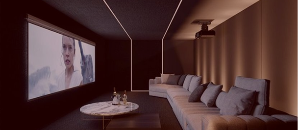 The design centered on creating a cinematic ambiance using indirect lighting, linear strips, and dramatic color contrasts. LED profiles were integrated across different zones, including: